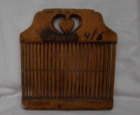 Bandgrind från 1700-talet, som man enligt givarens uppgift vävt strumpeband på.
