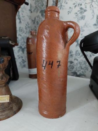 Brunt stenkrus av okänd ålder donerat av Klings ödegård. Föremålet användes som en blomvas.